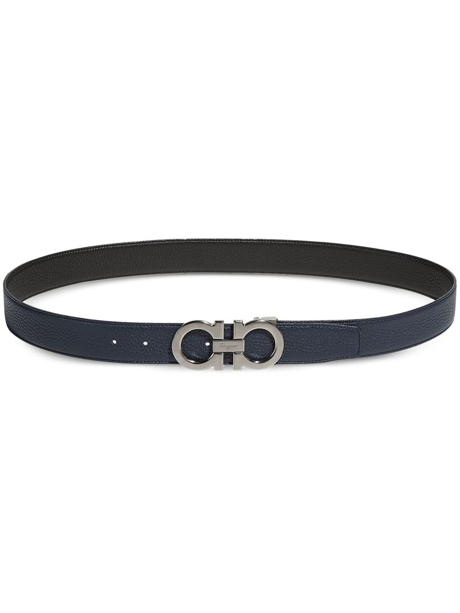 Crafted from natural grain calfskin with a subtle semi-matt finish, this belt features a reversible design and adjustable length. The metal buckle boasts a sleek ruthenium finish, adding a stylish accent. It is designed with a removable buckle for added versatility.