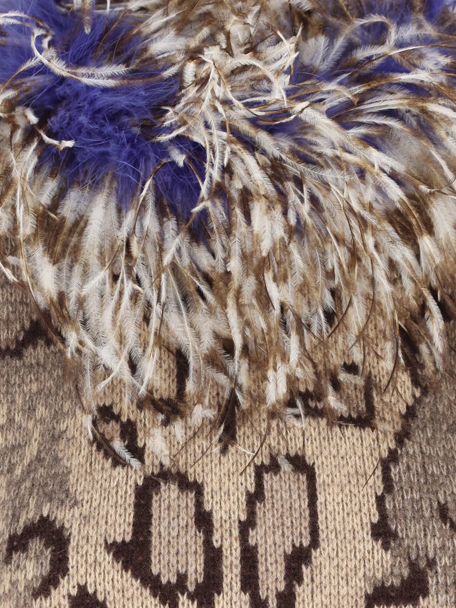 Valentino's cashmere dress expresses sophisticated elegance with a bold twist. Featuring an all-over animal print, it is enriched with feather details at the neckline that give movement and a dramatic effect. The flowing line and softness of cashmere make this garment an example of contemporary luxury, perfect for special occasions. - Material: 100% cashmere - Color: gray - Back button closure - All-over animal print - Feathered collar - Made in Italy - Item code: 7B0KD14F9Q4AN2