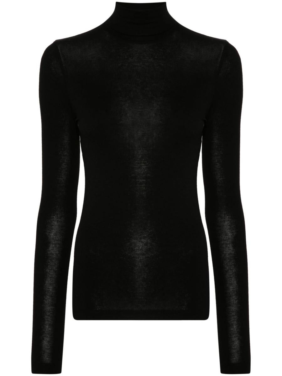 charcoal grey lyocell blend stretch-design roll neck long sleeves straight hem