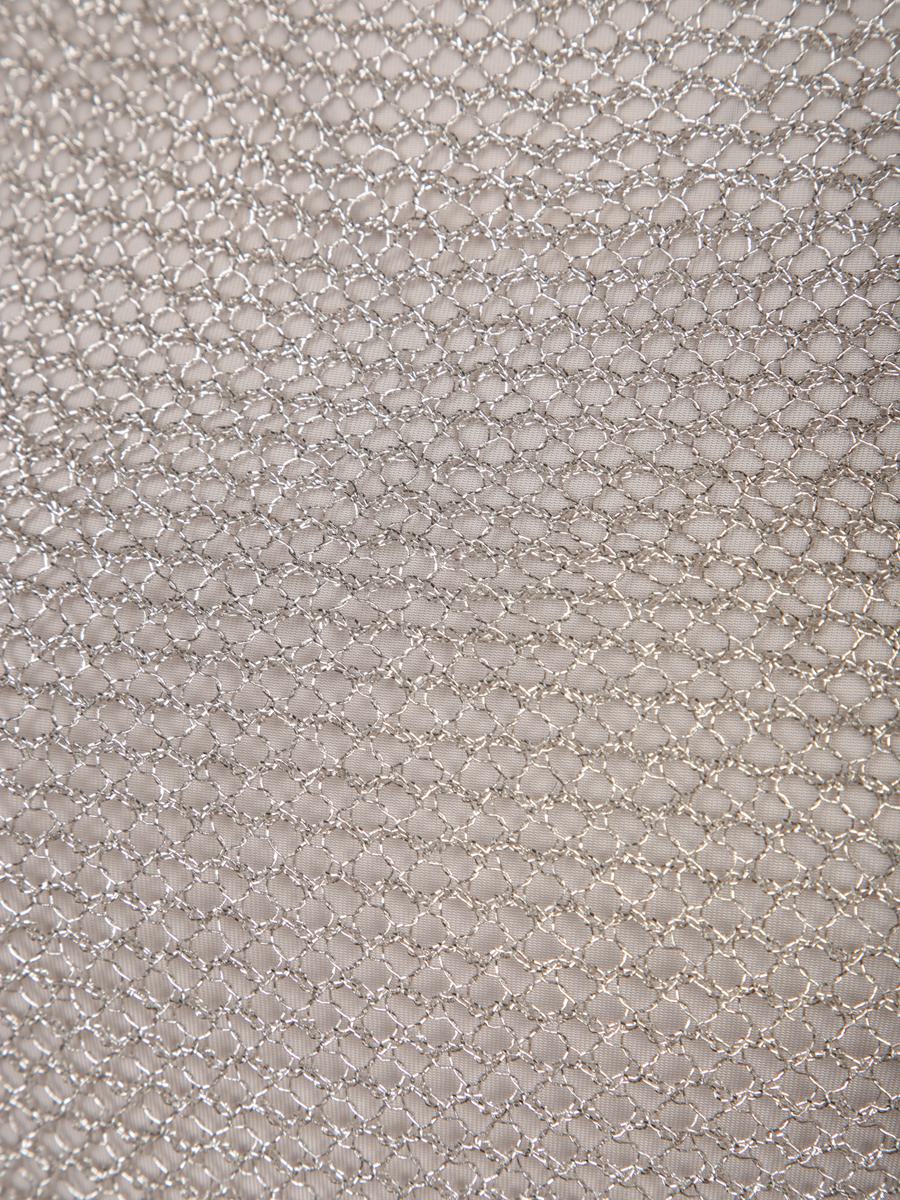 Long-sleeved dress in metallic mesh, high collar, shiny silver finish.. This exclusive ALAIA silver metallic mesh dress features a form-fitting silhouette that elegantly accentuates the figure with contemporary grace. Its understated design and high collar add a timeless touch of sophistication