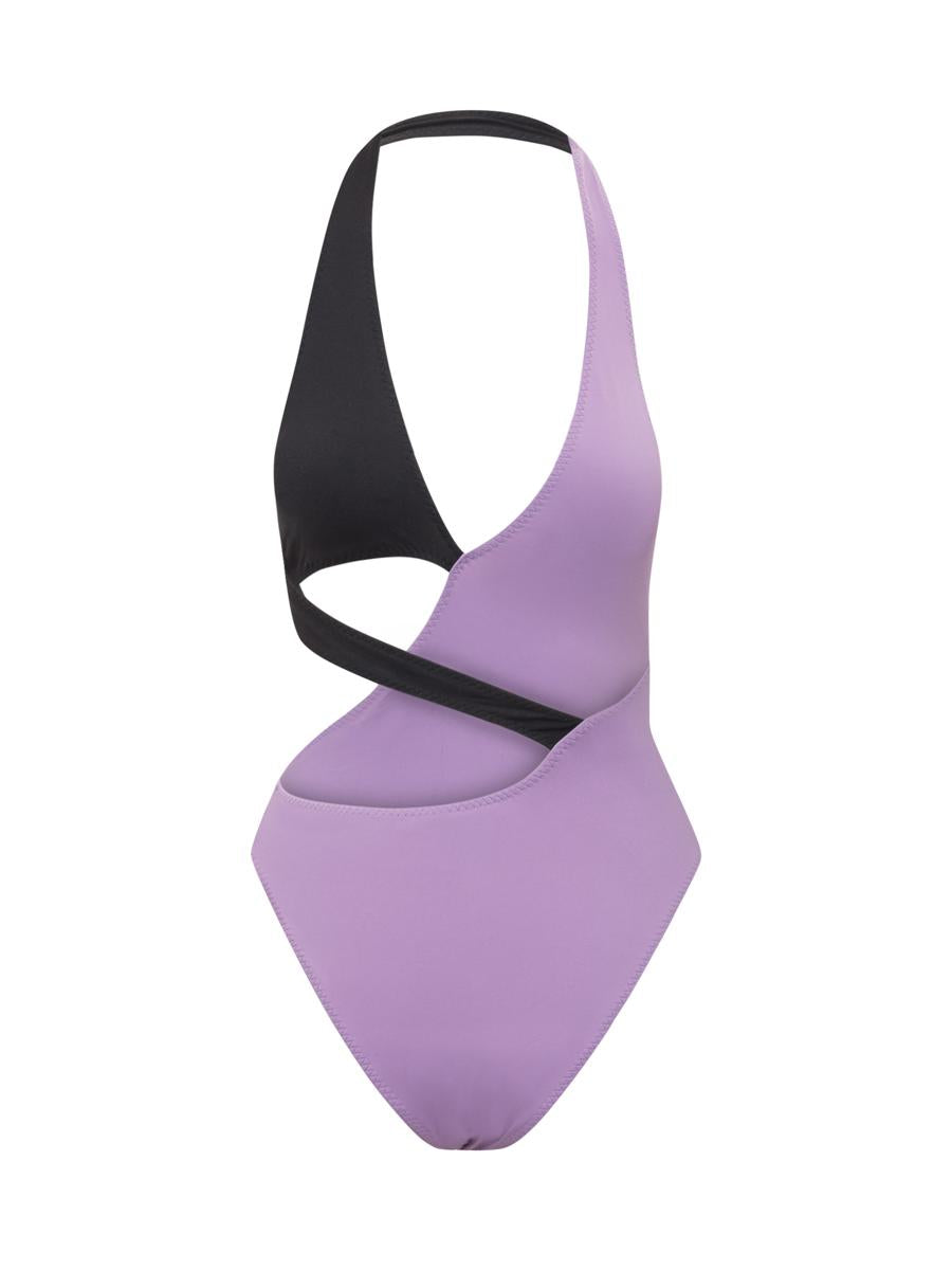 One-piece costume. Cut-out on the side. Two-tone pattern.