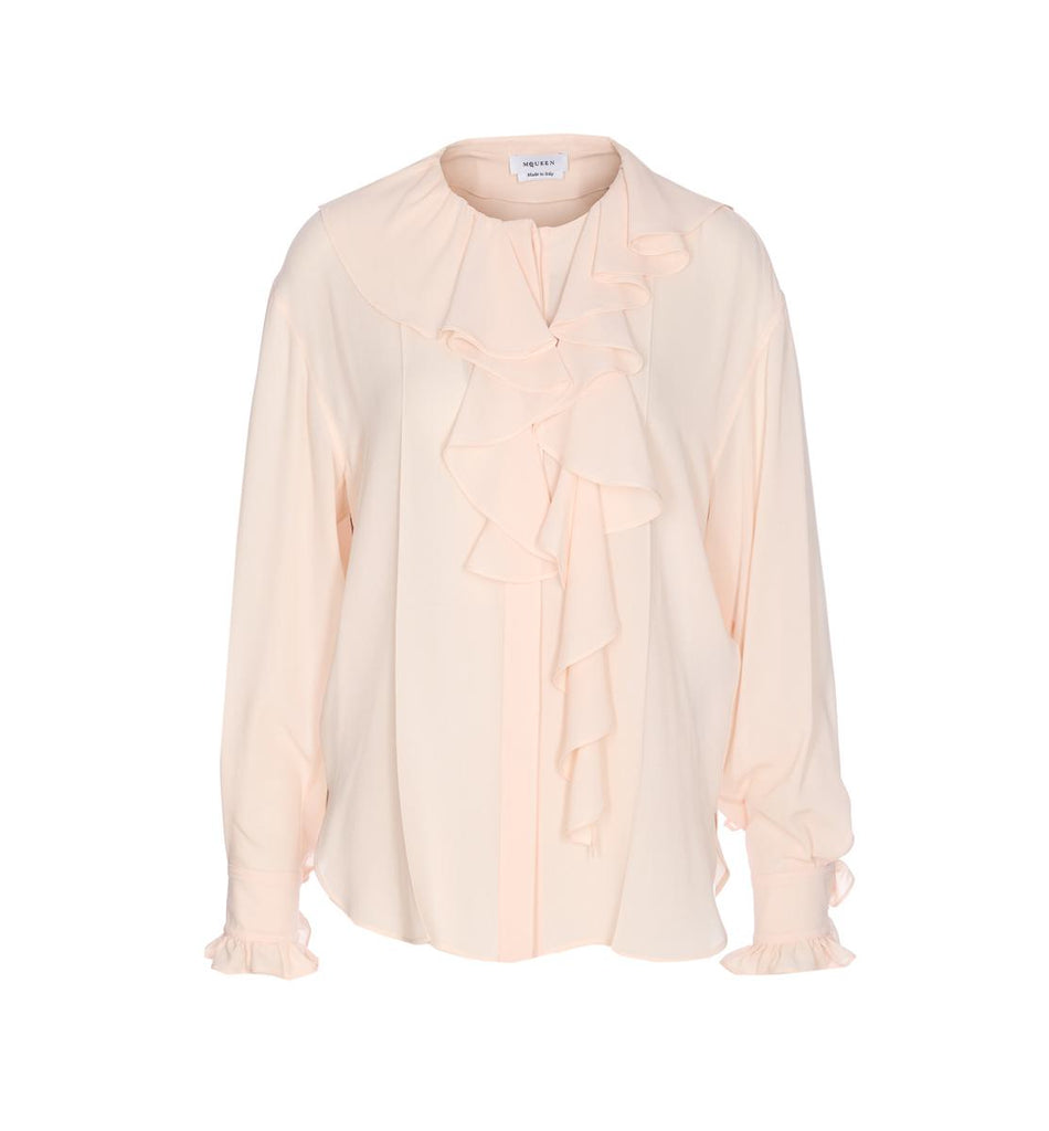 Mcqueen Pink Shirt With Frontal Buttons Closure, Long Sleeves, Button On Cuffs, Rouches Details On The Front, EU SIZE (IT)