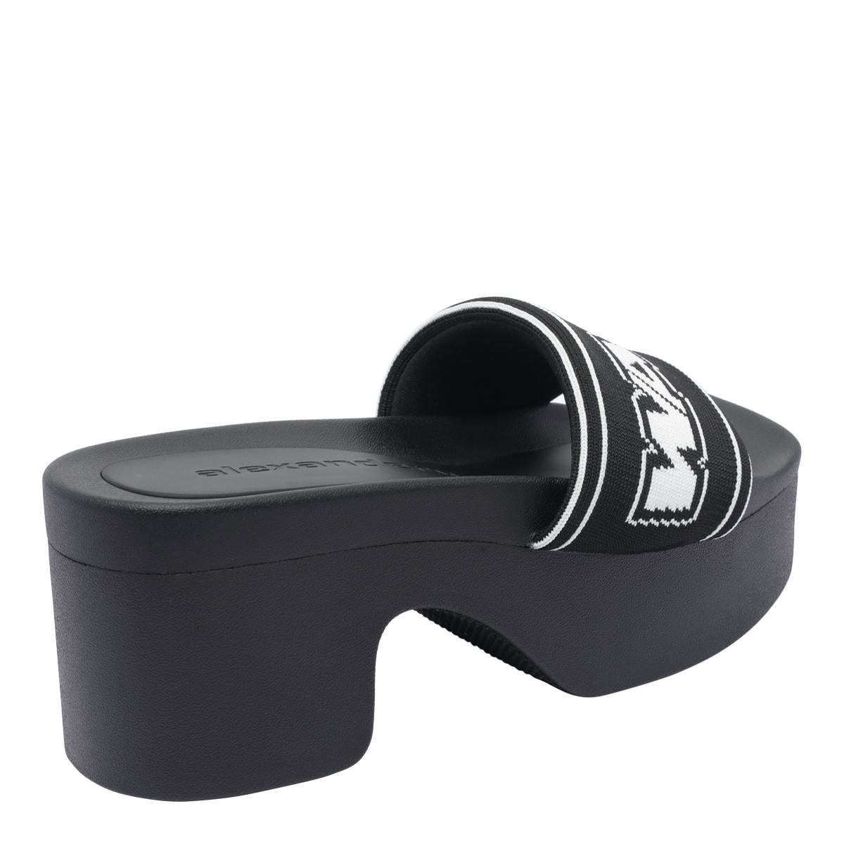 Alexander Wang Black Logo Plateau Sandals, Square Toe, Frontal Maxi Logo, Fabric Upper, Heel 8 cm