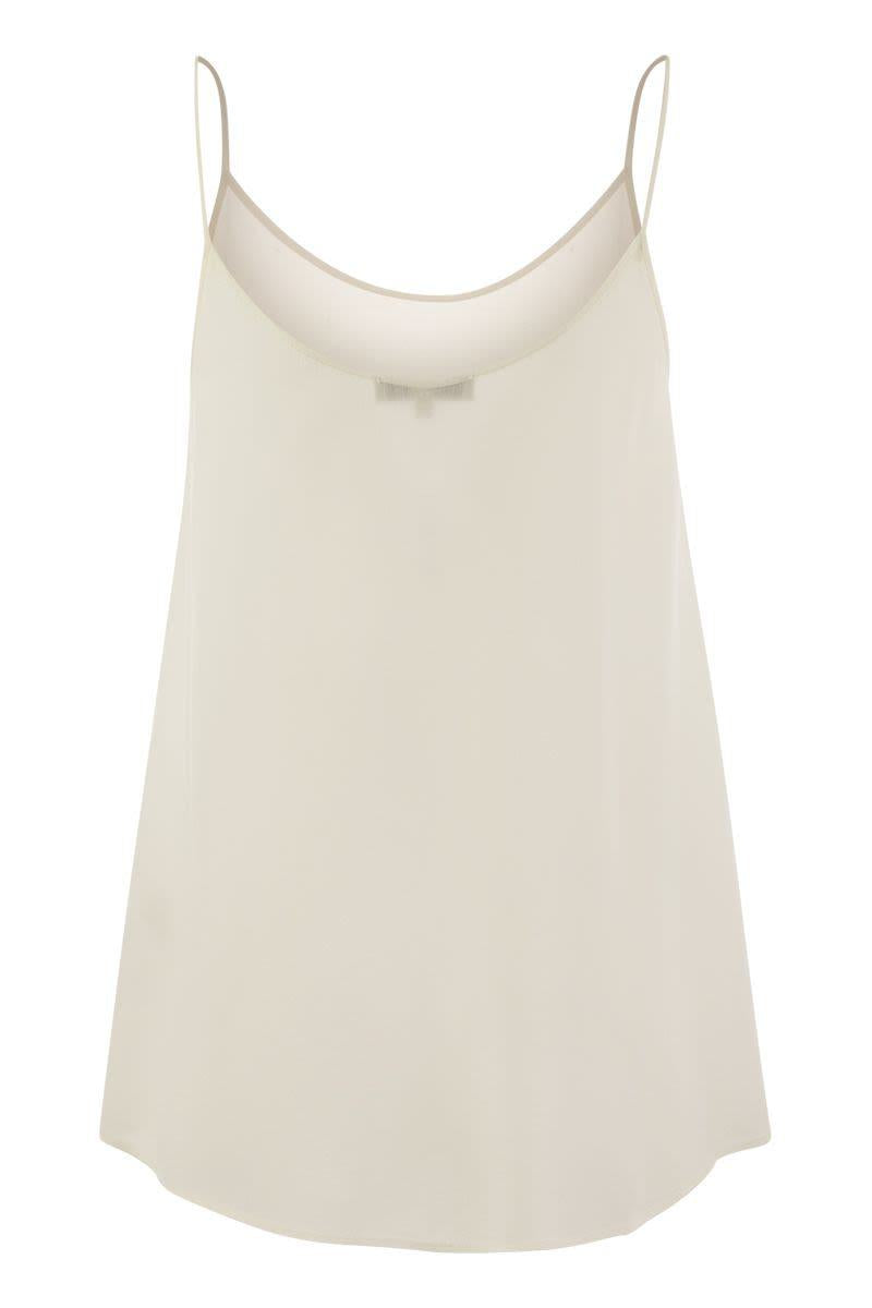 Antonelli Firenze presents this pure silk top for the new collection, characterised by its loose fit and thin straps. Perfect to wear alone or as an under-jacket. - Soft fit - U-neckline - Thin shoulder straps DESIGNER ID: T5661L240A 001