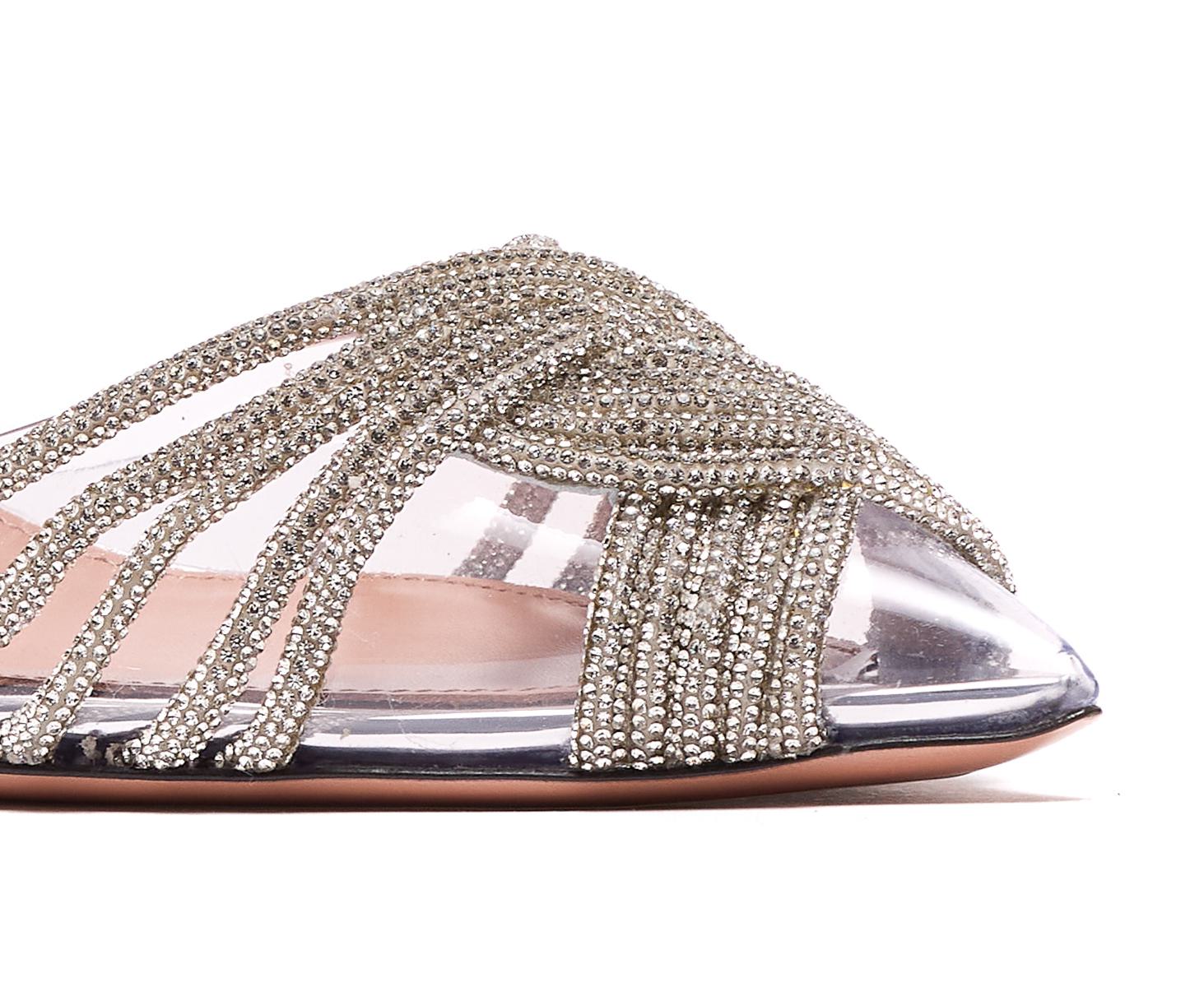 Aquazzura Silver Gatsby Plexi Slingback, Fabric Upper, Open Toe, Eu Size, Heel: 5 cm