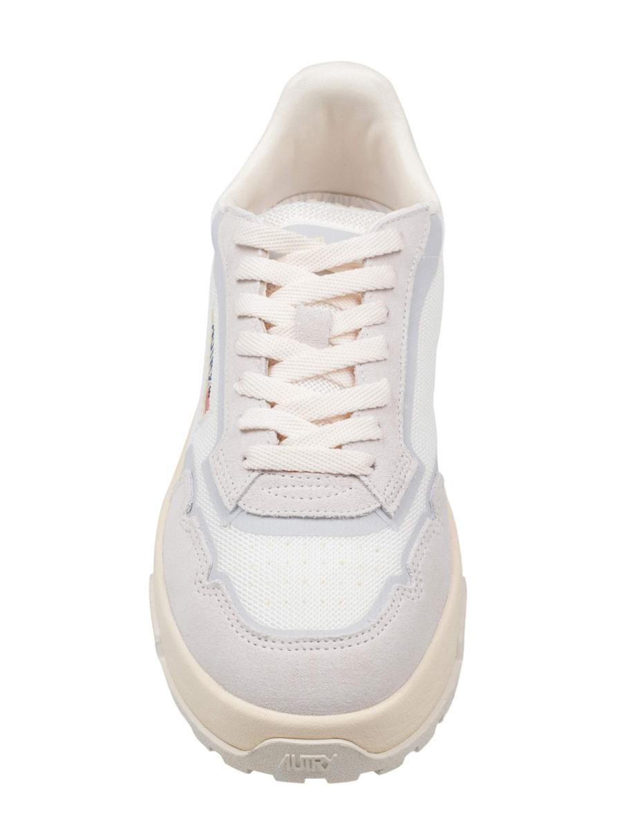 Mesh and suede sneakers White Flat cotton laces and two-tone tubular laces Micro-perforated toe cap Suede details Perforated toe cap Logo print on the tongue Ortholite insole raised by 1 cm Nylon and cotton terry lining Rubber and Phylon sole Sole height: 3.5-4.5 cm