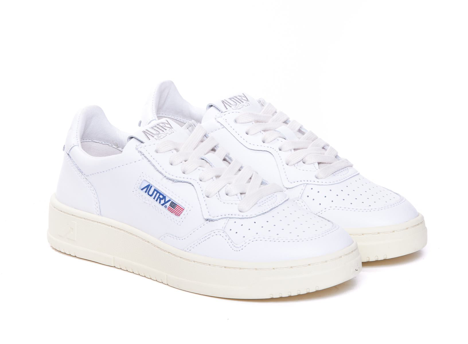 Autry Medialist Low Sneakers, Round Toe, Logo On Side, Lace Closure, Leather Upper, Rubber Sole, EU size