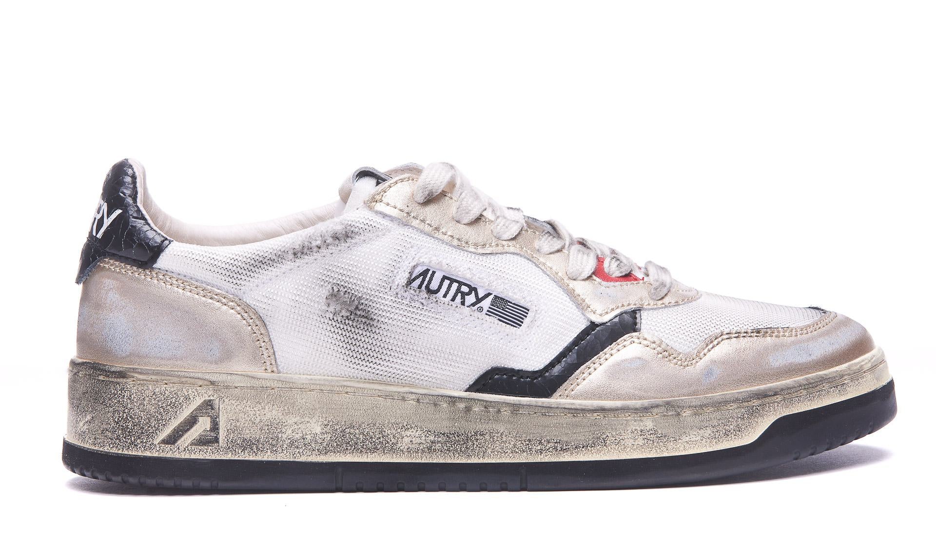 Autry White Super Vintage Medalist Sneakers, Leather Upper, Round Toe, Logo, Used Effect, Eu size (IT)