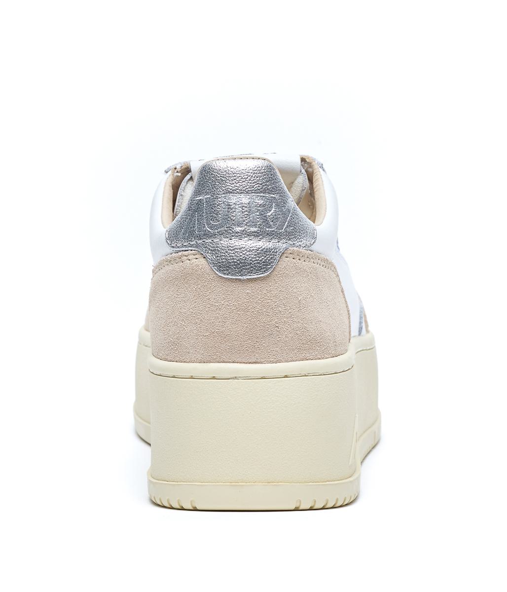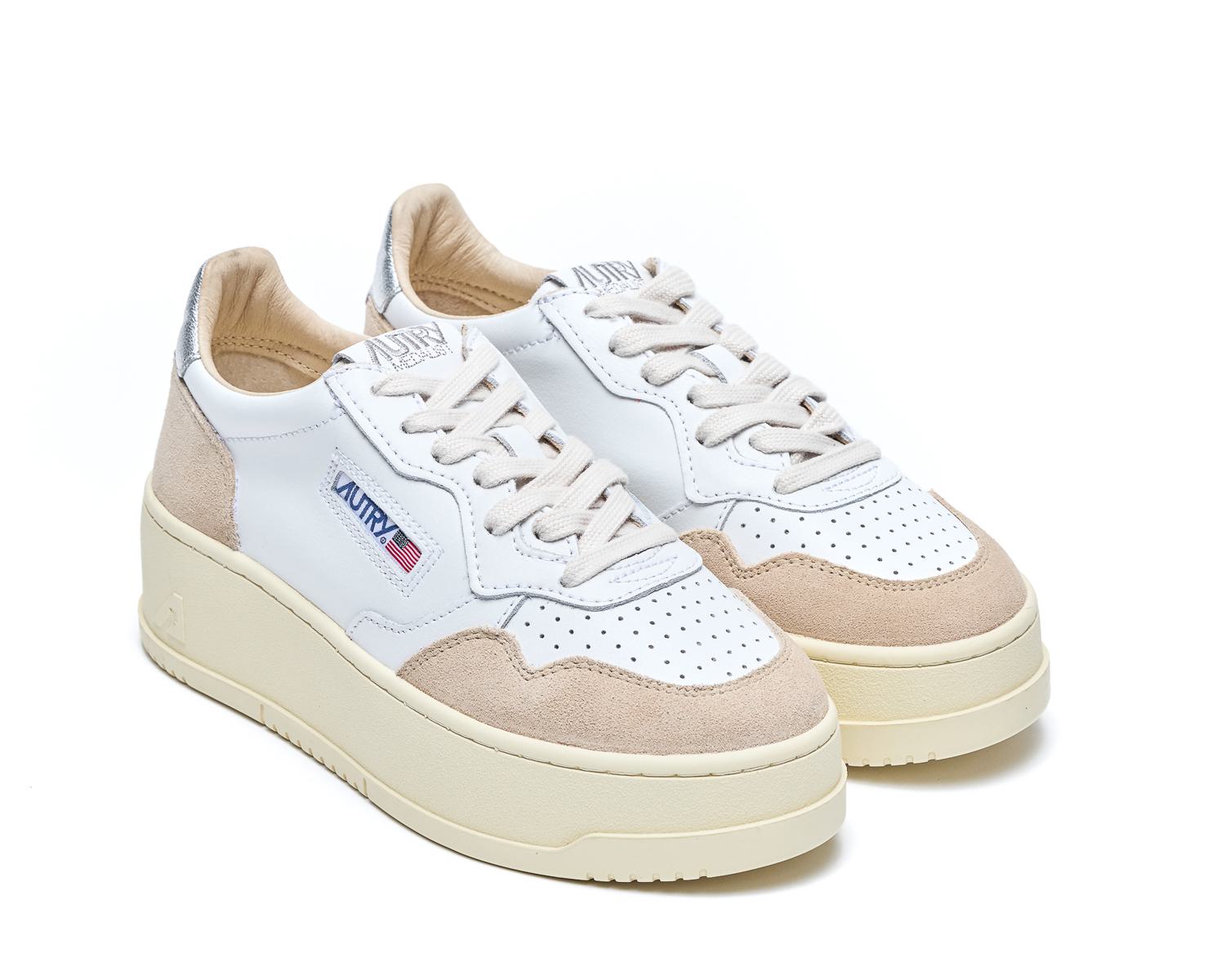 Autry White And Beige Platform Sneakers, Laces Closure, Lateral Logo, Logo, platform 5 cm