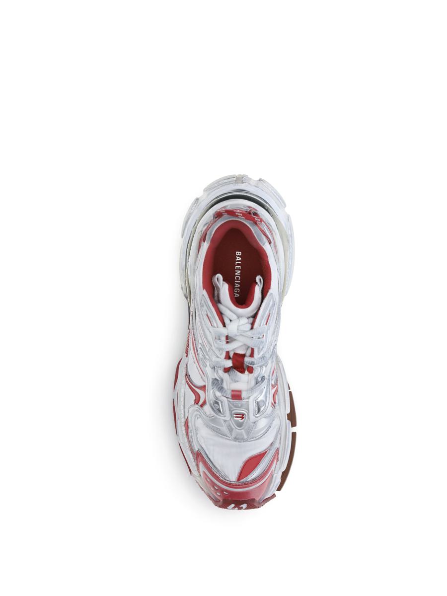 BALENCIAGA'S RUNNER 2 SNEAKERS FEATURE A TEXTURED PLATFORM SOLE THAT LENDS HEIGHT AND COMFORT. THE WOVEN LEATHER PANEL DESIGN IS ENHANCED WITH NEON DETAILS, ADDING A DYNAMIC AND MODERN TOUCH. THE FRONT LACE-UP CLOSURE ENSURES AN ADJUSTABLE FIT, WHILE THE SIZE NUMBER IS EMBROIDERED ON THE TOE FOR A DISTINCTIVE DETAIL. THE FRONT TONGUE IS DECORATED WITH A LABEL FEATURING THE BRAND'S ICONIC EMBROIDERED MONOGRAM IN CONTRASTING COLORS. THE LOGO ALSO APPEARS ON THE SOLE AND INSOLE, COMPLETING THE DISTINCTIVE AND CONTEMPORARY LOOK OF THESE SNEAKERS.