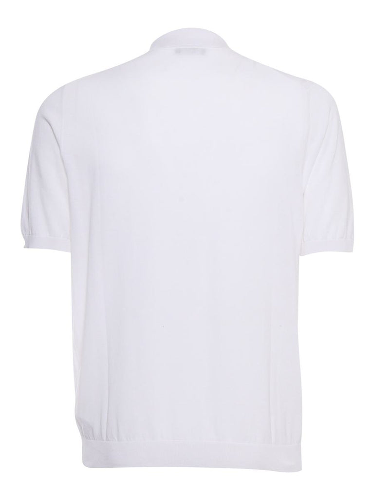 White cotton polo White men's cotton polo shirt with short sleeves, collar, front buttons, high hems.