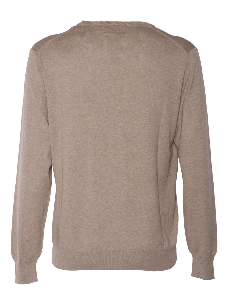 Brown pullover Brown silk and cotton blend pullover with V-neck, ribbed hems.