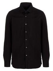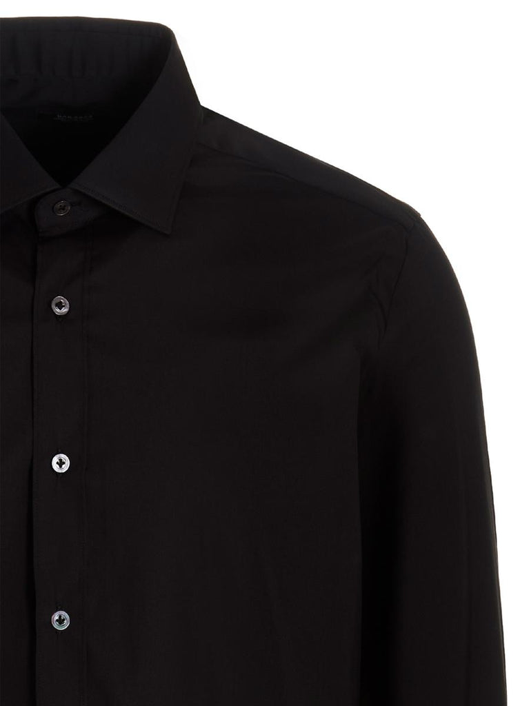Cotton blend poplin shirt with button closure, long cuffed sleeves