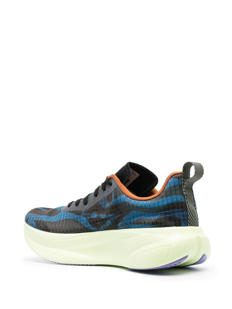 Kaiju low-top sneakers from BRAND BLACK featuring navy blue, multicolour, panelled design, logo-print tongue, round frame, front lace-up fastening, pull-tab at the heel, branded insole and chunky rubber sole.