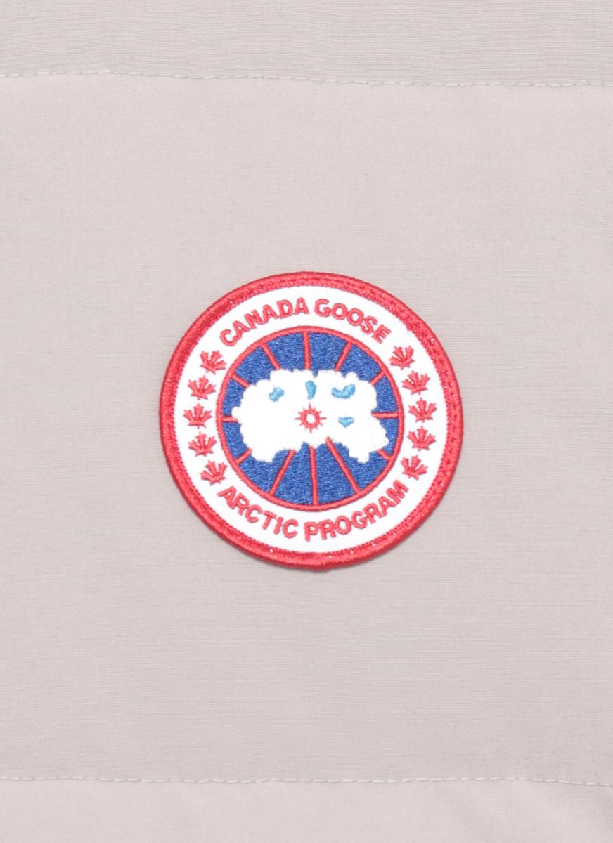 - Beige Canada Goose padded and quilted vest for man - High neckline - Sleeveless - Front zip and snap buttons fastening - Two front welt pockets - Two front slit pockets - Front contrasting color logoed patch