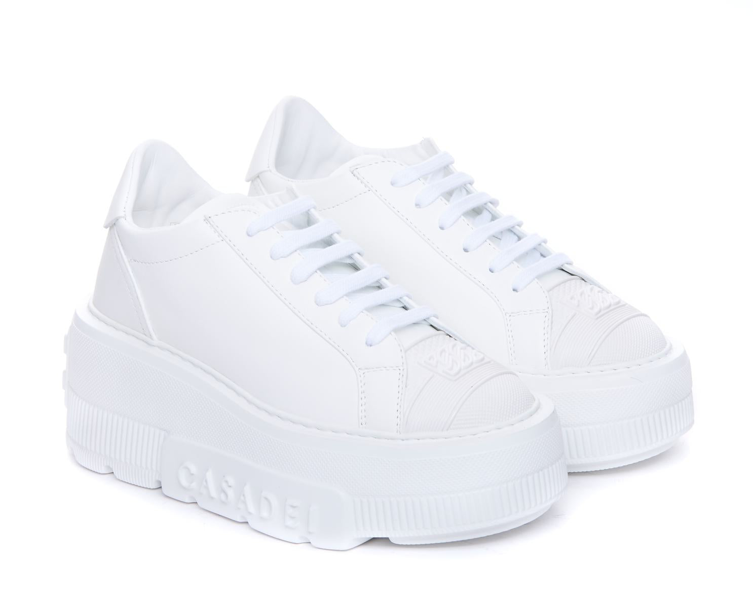 Casadei White Nexus Sneakers, Leather Upper, Laces Closure, Round Toe, Logo, Platform 7 cm