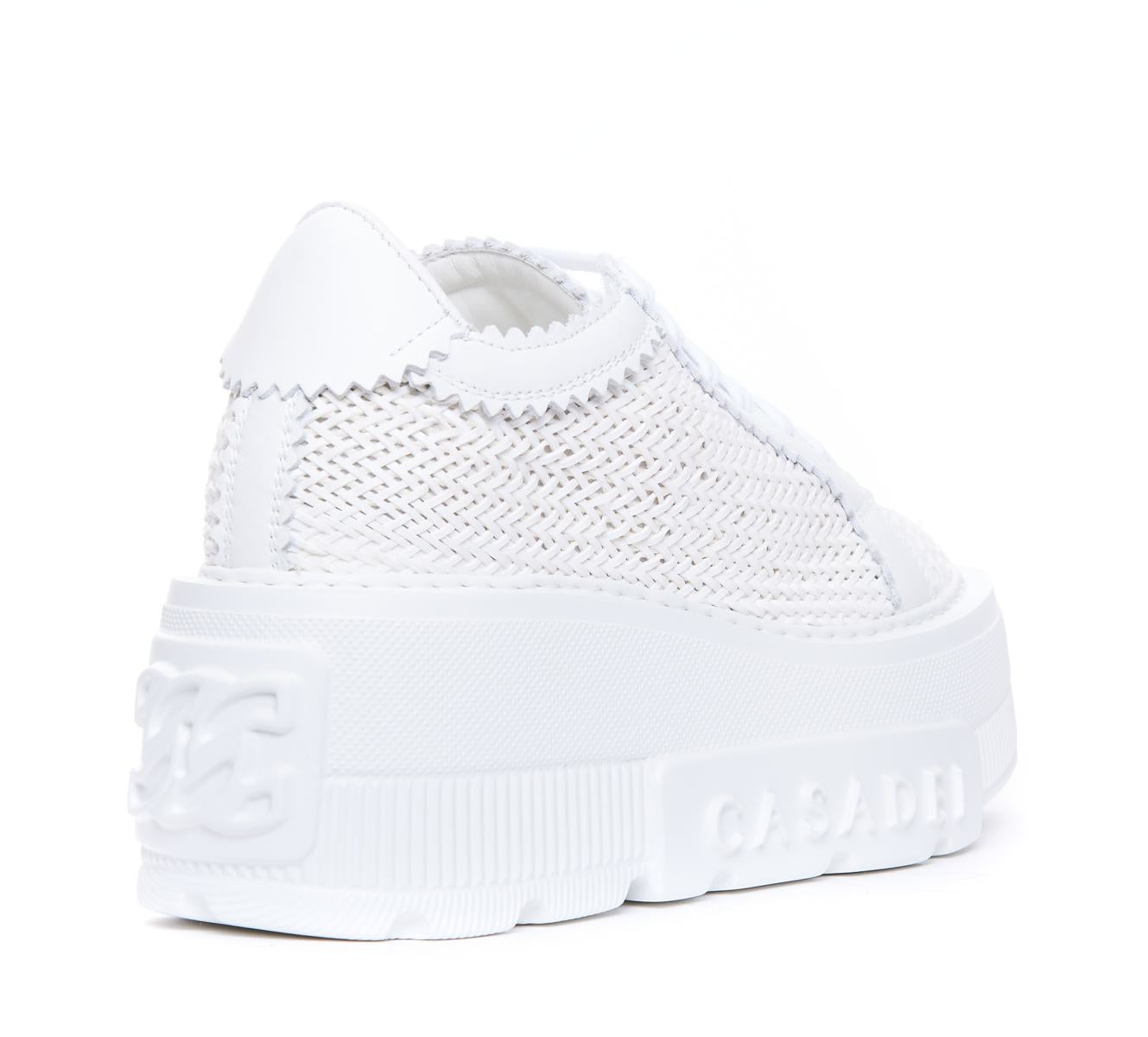 Casadei White Nexus Sneakers, Laces Closure, Platform Model, Embroidered Model, Lateral Tone On Tone Logo, Platform: 7 cm