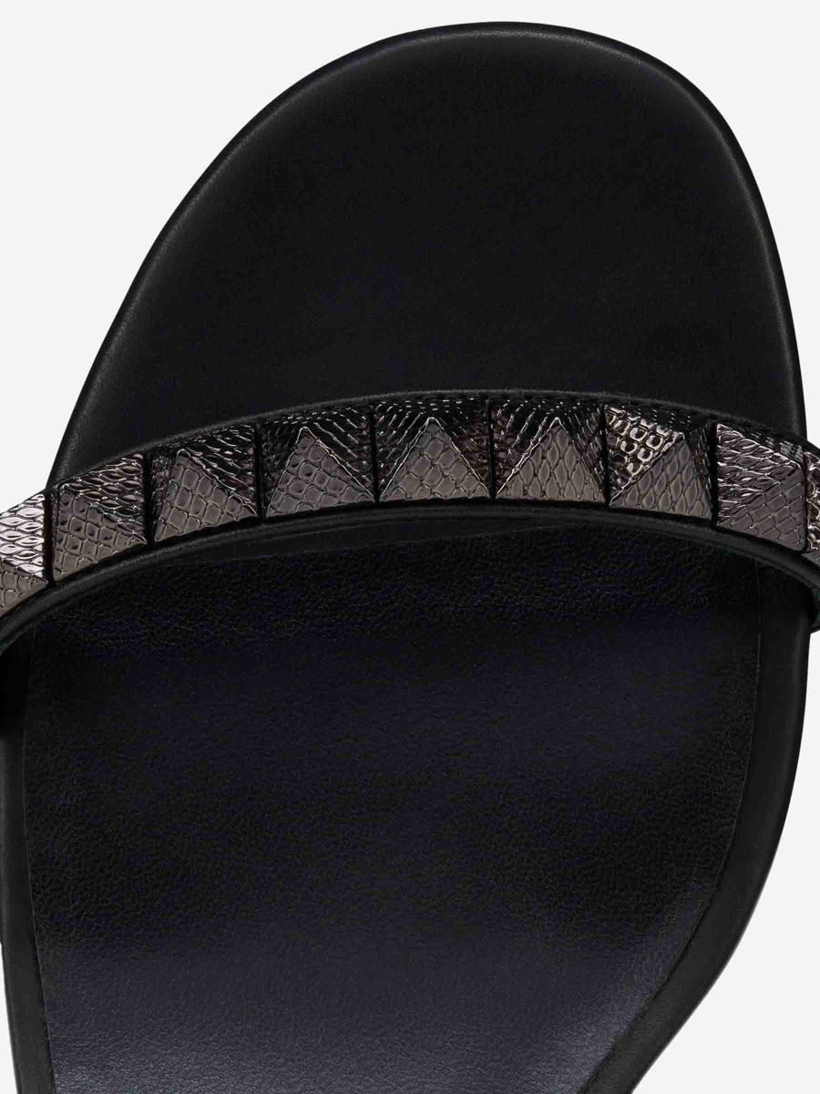 Sandals by Christian Louboutin• Tacones• Sandals• Made of waxed calfskin• A row of studs defines its 30mm wedge heel.• Heel height: 3 cm• Strap tie-up• Rounded toe• Thin strips of black waxed leatherMade in Italia100% Waxed Calfskin