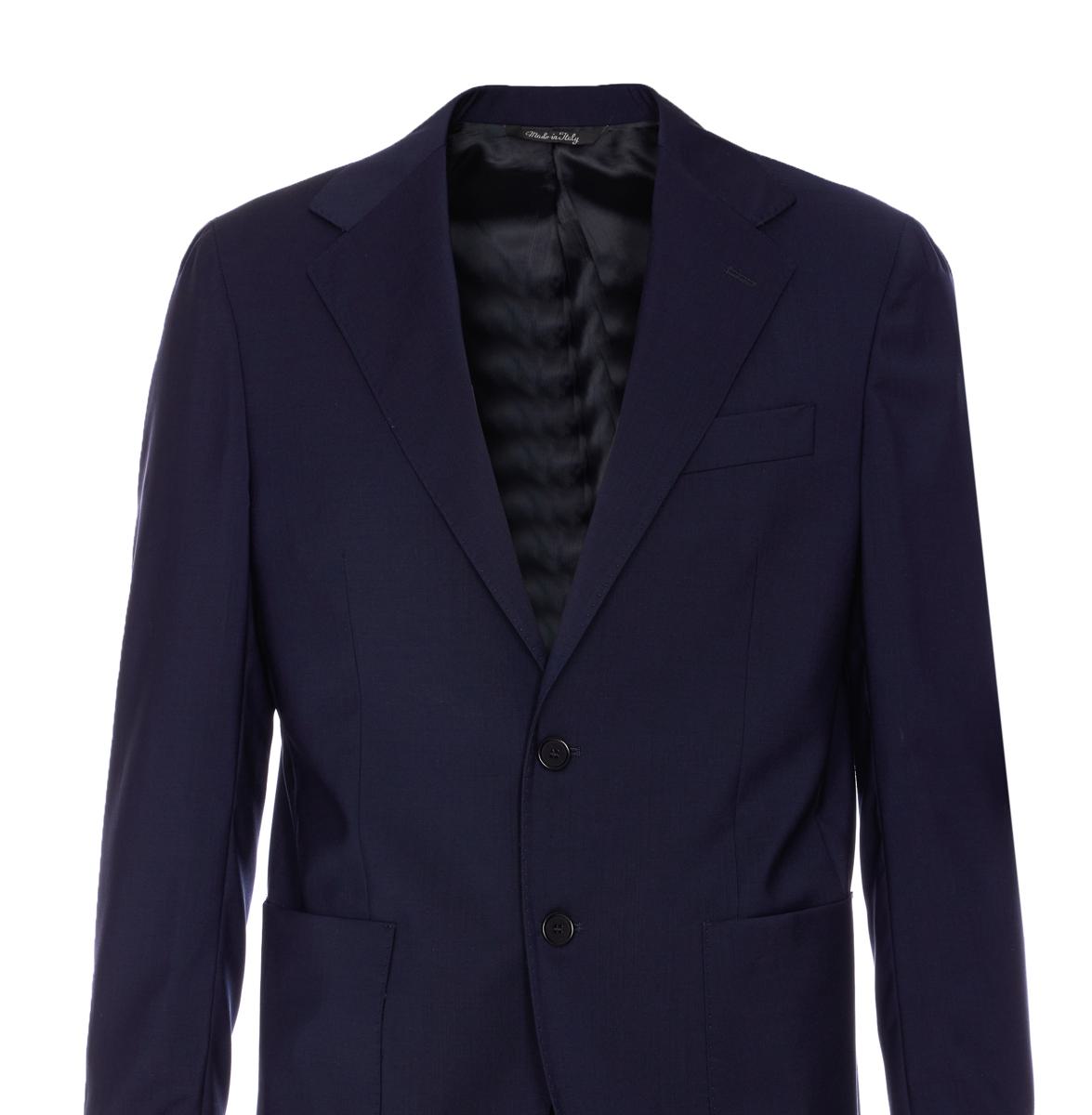 Colamarino Dark Blue Napoli Suit, Jacket With Buttons Closure, Long Sleeves With Buttons On Cuffs, V-Neck, Frontal Pockets, Jacket With Zip And Buttons Closure, Lateral Pockets, Regular Fit, EU SIZE (IT)