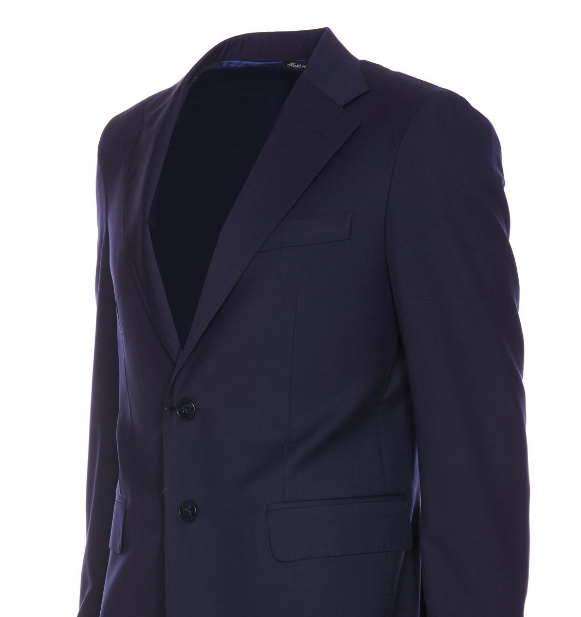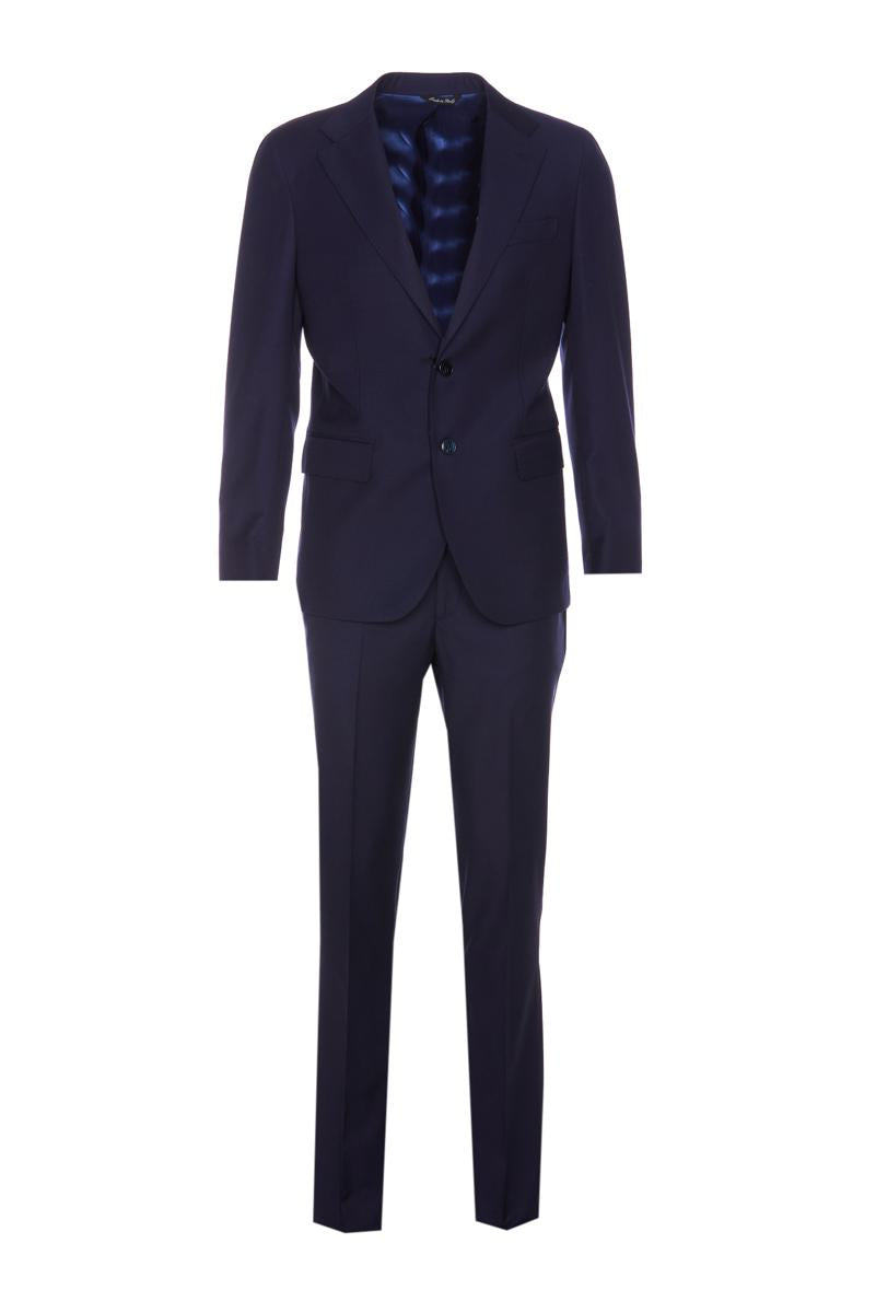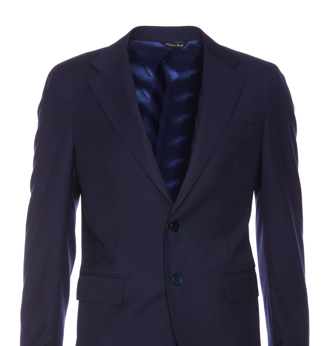 Colamarino Blue Suit, Jacket With Frontal Buttons Closure, Frontal Flat Pockets, Long Sleeves, Buttons On Cuffs, V-Neck, Reverse Detail, Split On The Back Pants With Frontal Buttons And Zip Closure, Lateral Pockets, Regular Fit, Straight Model, EU SIZE (IT)