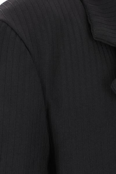Comme des Garcons' double-breasted jacket crafted in black technical fabric with striped weave and internal inserts. Featuring notch lapel, button closure, structured shoulders, long sleeves with buttoned cuffs, front pockets and straight hem.