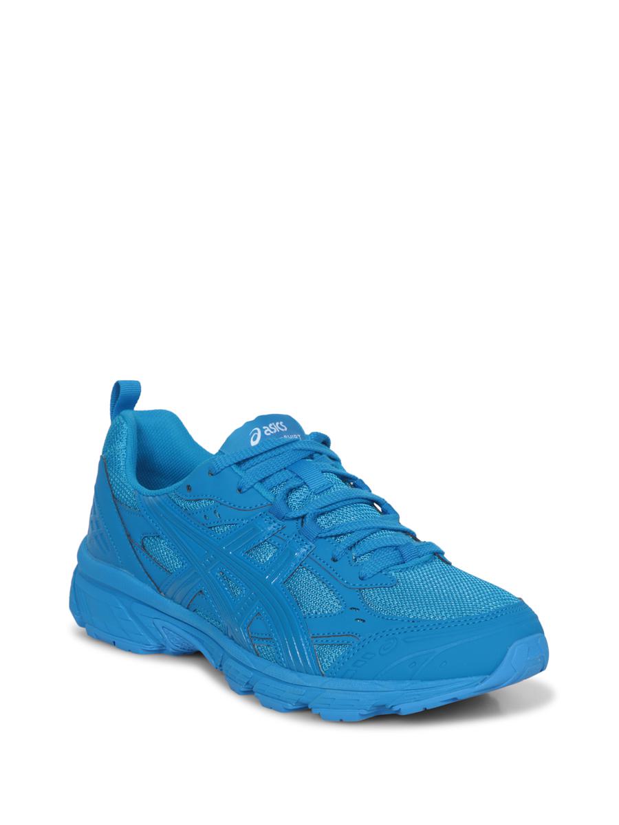 Blue technical fabric sneakers, rubber sole, lace-up closure.