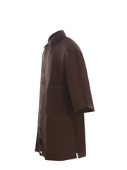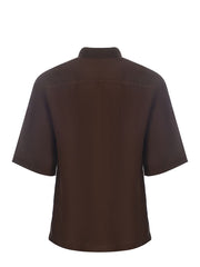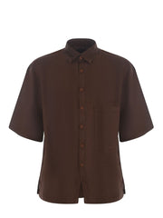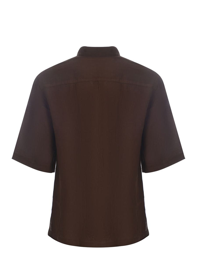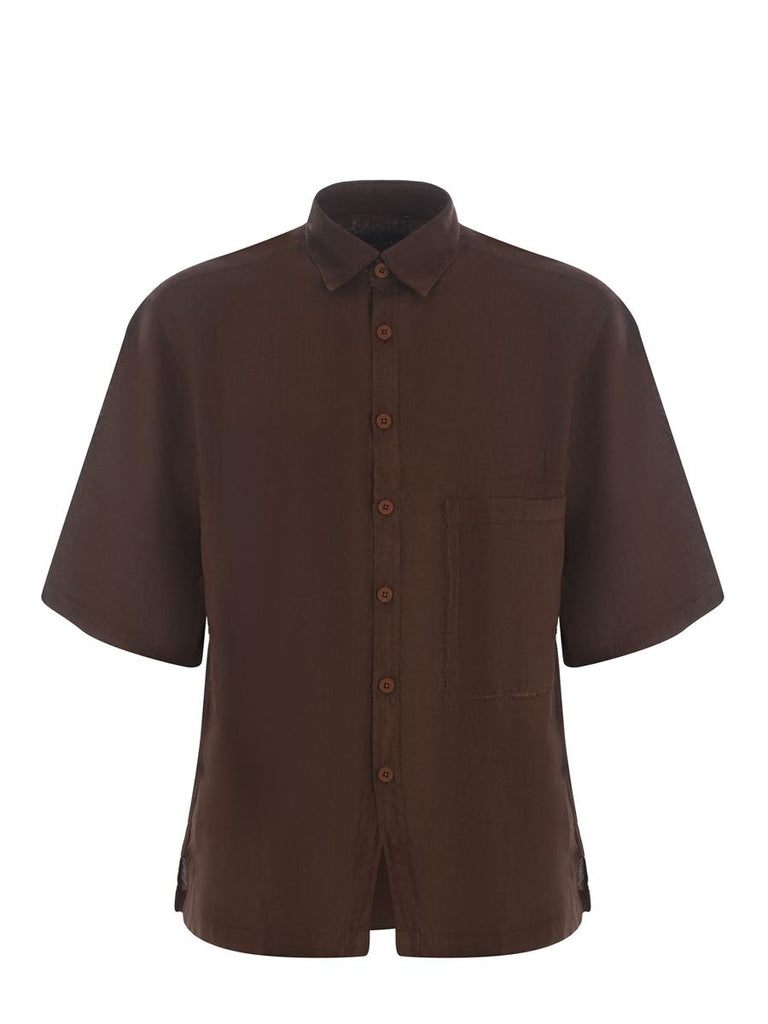 Shirt Costumein "Stefano" made of linen in Brown color. Classic pointed collar. Short sleeves. Patch pocket on the chest. Button closure on the front.