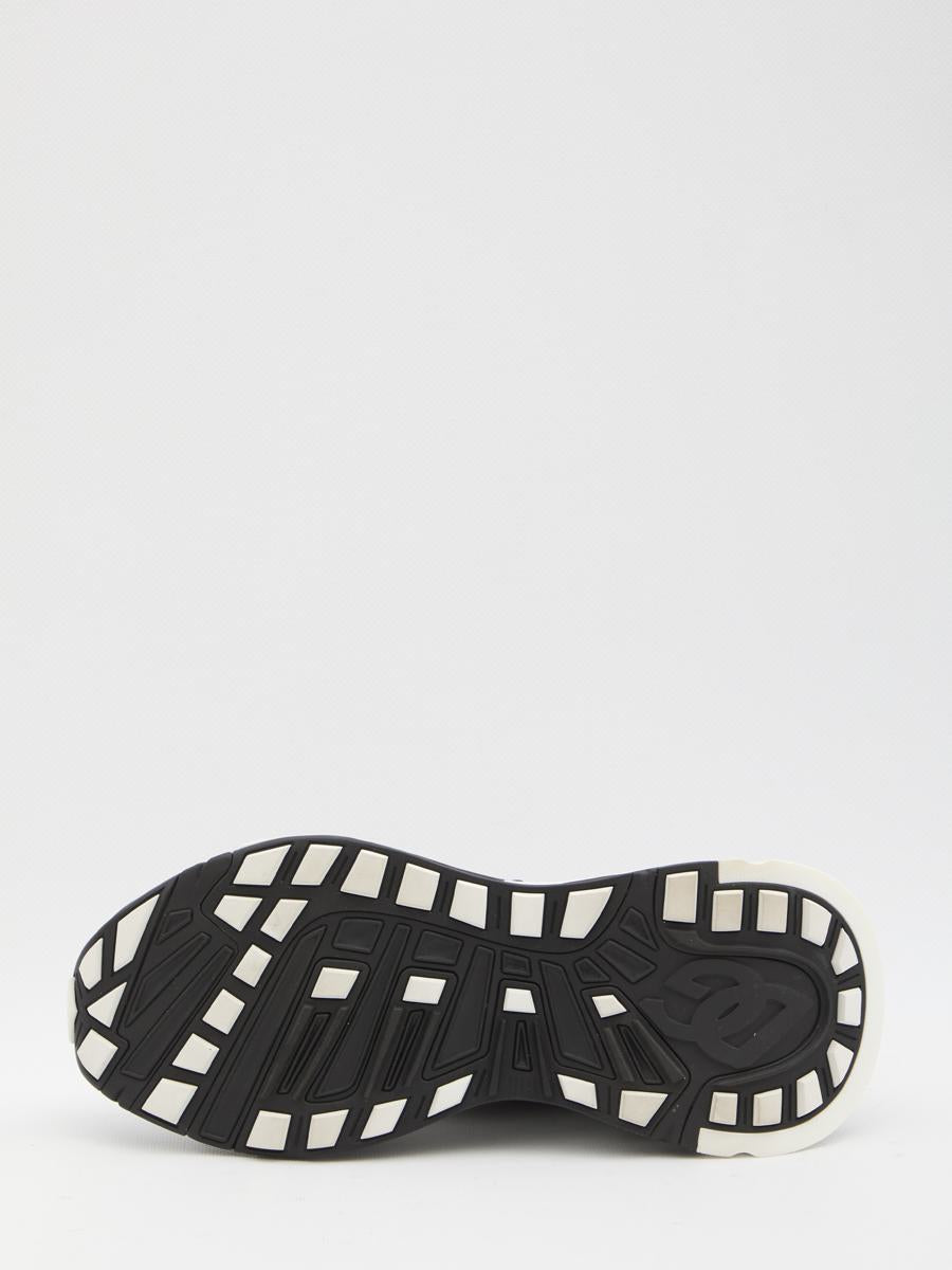 Sneakers in white and black fabric and leather. Features Day Faster base, rubber sole, felt insole, fussbett latex footbed wrapped in leather personalized with label, lateral DG patch, lace-up closure with branded drawstring. Dustbag included.