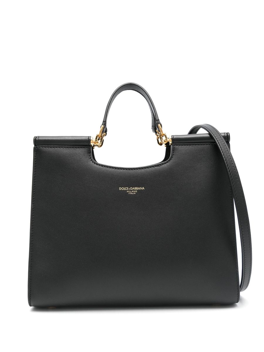 Dolce&Amp;Gabbana Black Sicily Shopping Bag, Inner Zip And Open Pocket, 2 Handles, Adjustable And Removable Shoulder Strap, Logo, Small Model, 21,5x25,5x10 cm