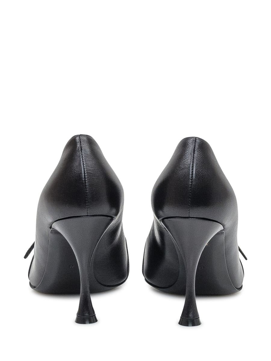 Black leather pumps by Dolce & Gabbana with a tapered toe and stiletto heel. Heel height: 9