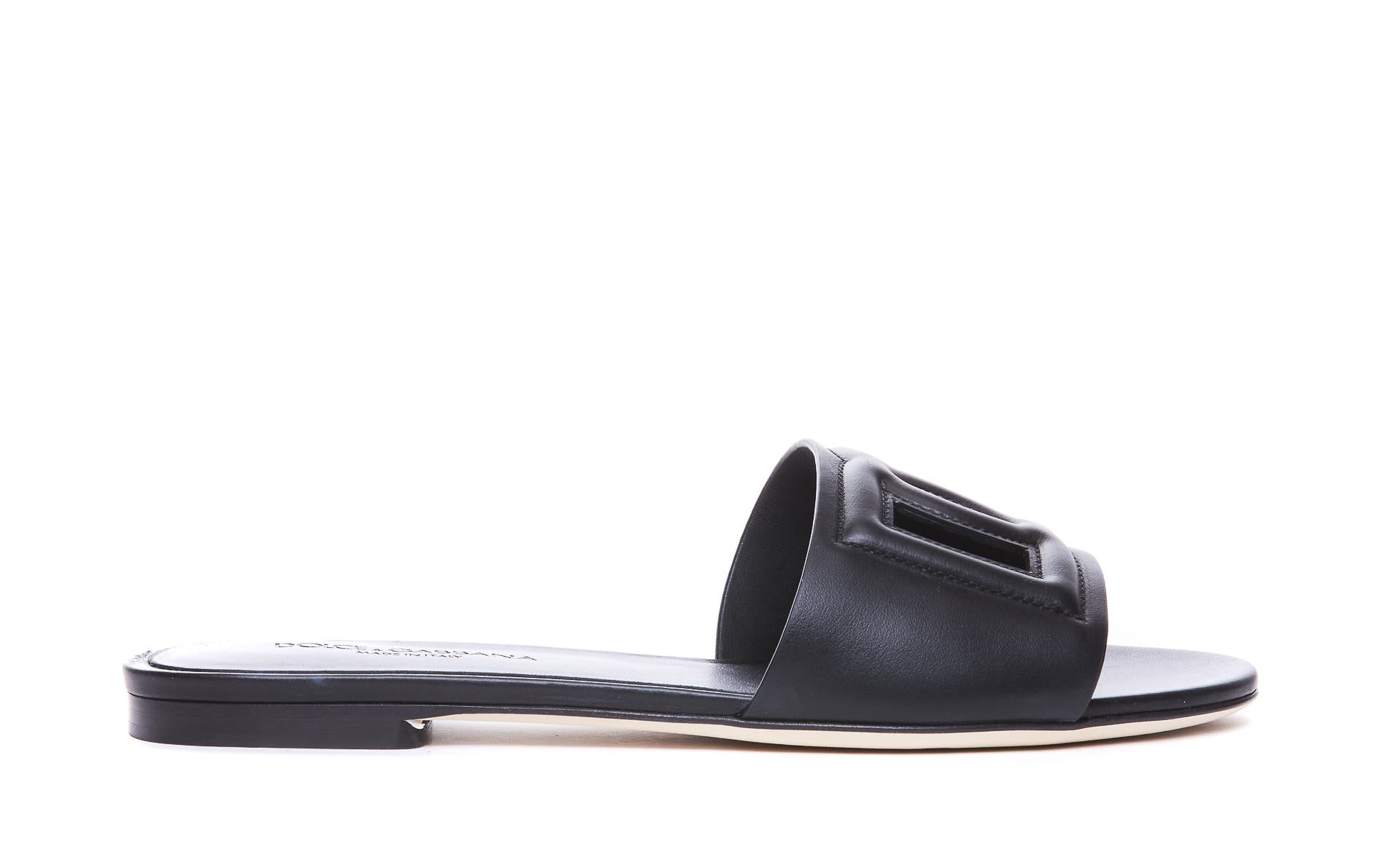 Dolce&Amp;Gabbana Leather Slide With Dg Logo, Open Toe, Logo On Front, Leather Upper, Leather Sole, EU SIZE (IT)