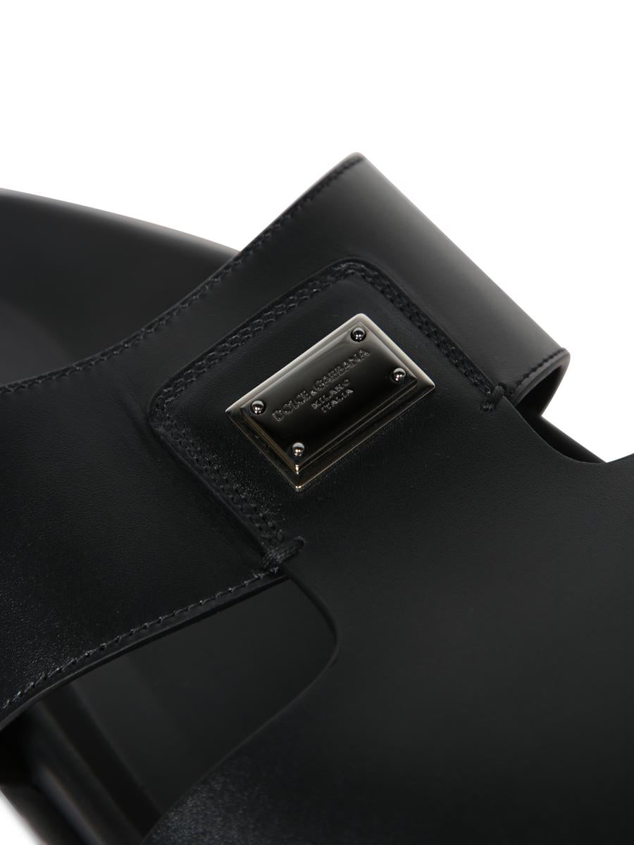 Elegant and practical, these Dolce & Gabbana sandals feature a high-quality black polished leather upper strap. The custom side buckle adds a distinctive touch, while the sturdy sole provides lasting comfort.