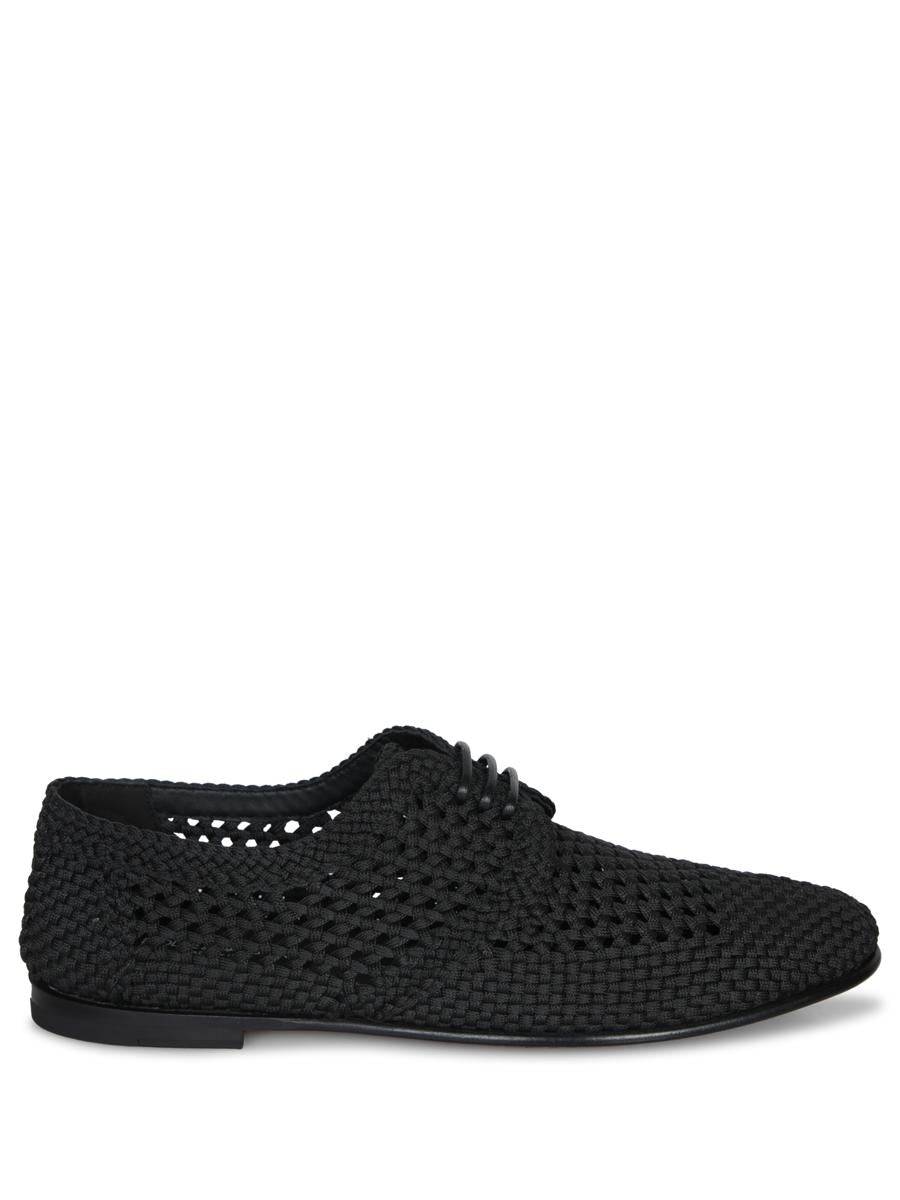 Front lace-up closure. Braided design. Round toe.. Crafted from Dolce & Gabbana's artisanal passion, these black Derby shoes feature an innovative braided structure that merges sophisticated style with breathable comfort, perfect for distinct looks both day and night