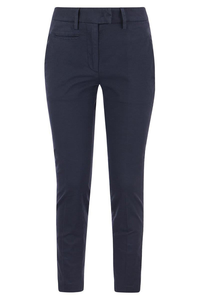 Perfect Dondup trousers with a slim cut and a straighter line. They are versatile and adapt to all types of looks. - Ankle-length - Regular waist - Welt pockets at the back - Light stretch eco cotton gabardine - Garment dyed - Dondup logo DESIGNER ID: DP066 GSE046D PTD DD 894