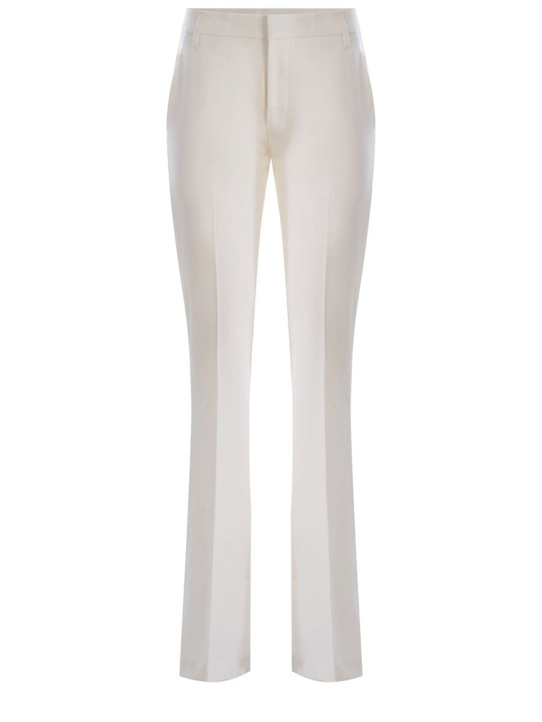 Trousers Dondup made of fresh White wool. High waist. Belt loops. Skinny. "D" logo applied on the back pocket. Welt pockets on the back.