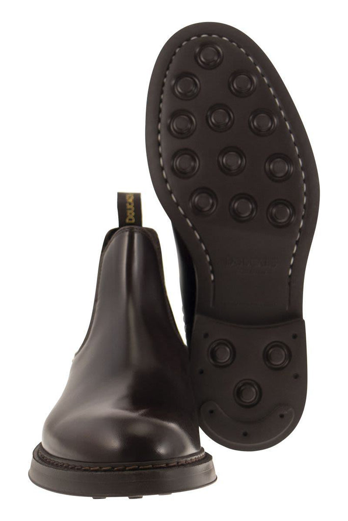 Leather Chelsea ankle boot with elastic at the sides with clean, rounded lines, leather sole with half rubber sole. Blake construction makes the shoe durable and soft to wear. - Leather - Wide shoe fit DESIGNER ID: DU1384BRUXUF007TM04