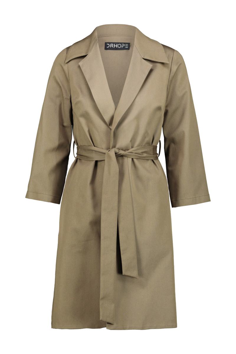 Drhope long jacket in cotton, removable waist belt closure, three-quarter sleeves