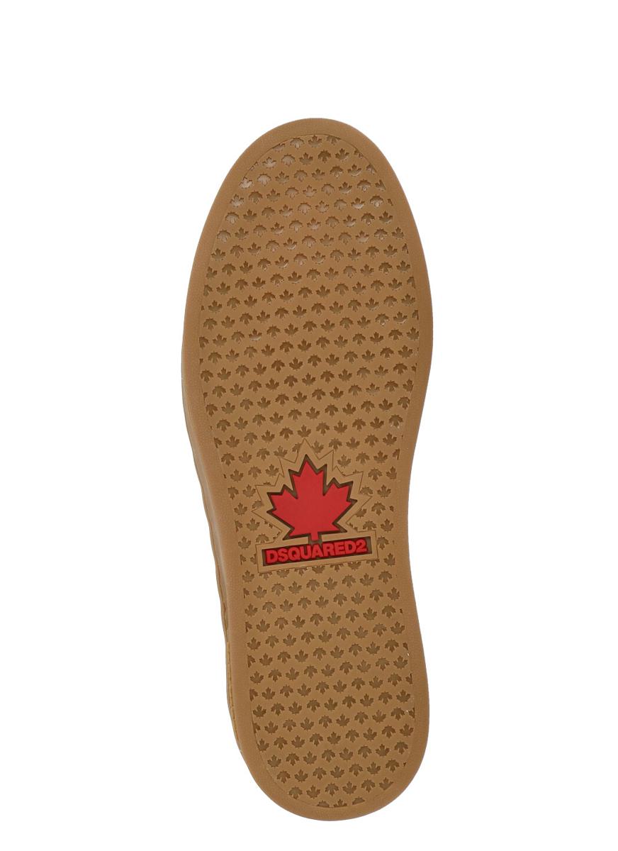 - White Dsquared2 leather sneakers for man - Round toe - Logoed tongue - Front laces fastening - Side contrasting color inserts - Suede leather inserts - Contrasting color upper heel - Rubber sole