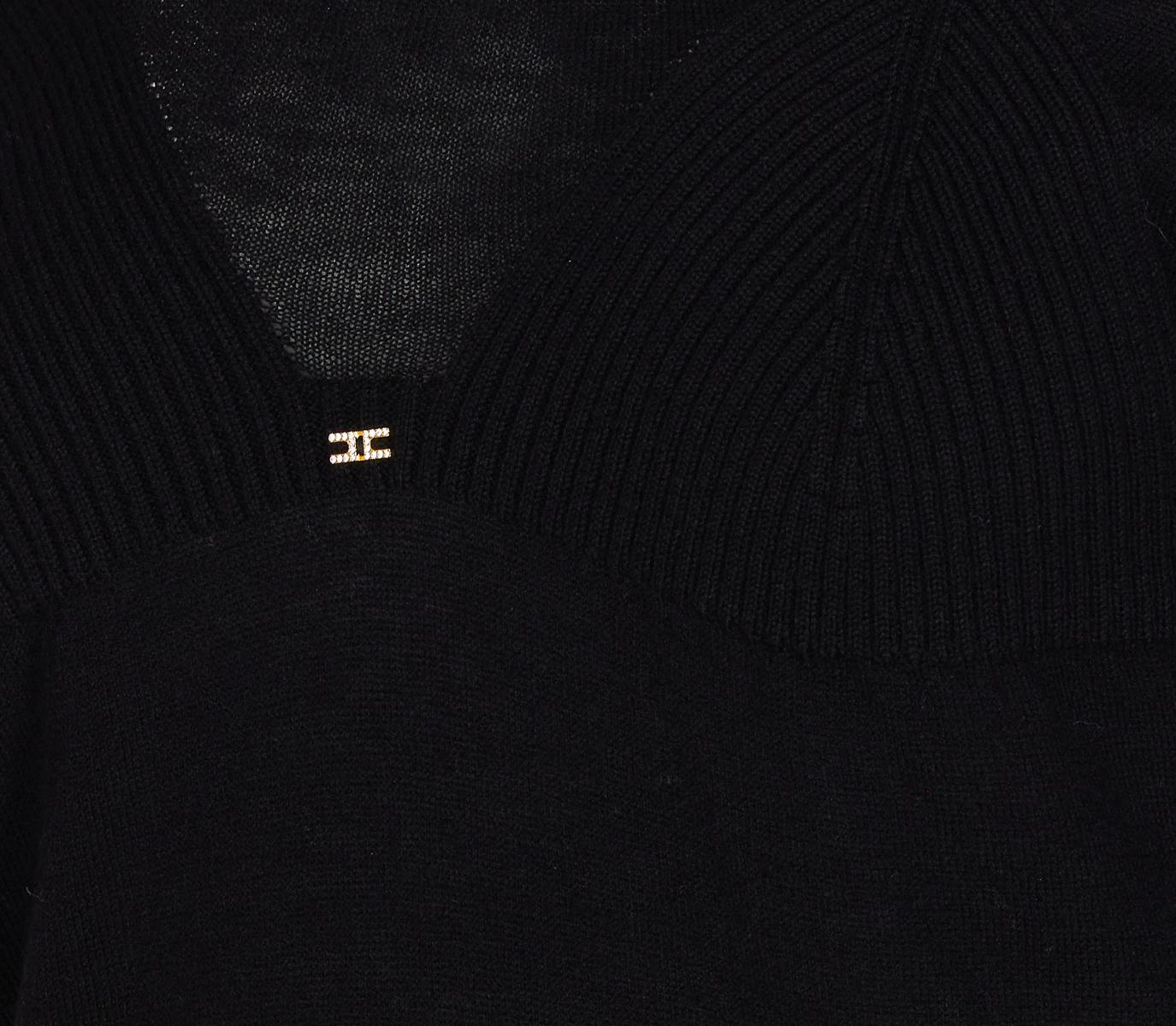 Elisabetta Franchi Black Long Sleeves Top, Crewneck, Long Sleeves, Mini Plaque Logo On The Front, EU SIZE (IT)
