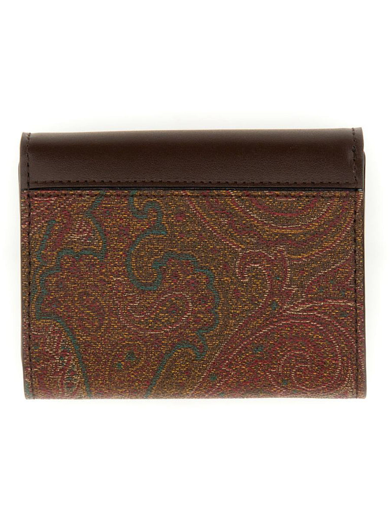 Item Color: Arnica | Made in Italy | Wallet crafted in the iconic Paisley jacquard canvas, embellished with the ETRO Pegasus logo embroidered flush with a three-dimensional effect | Banknote compartment | Coin pocket with flap | Card slots | Size: 11 x 9 cm | Outer Composition: Paisley jacquard cotton fabric coated with matte grain and lined with canvas | Inner Composition: 100% Calfskin | Lining Composition: 100% Nylon