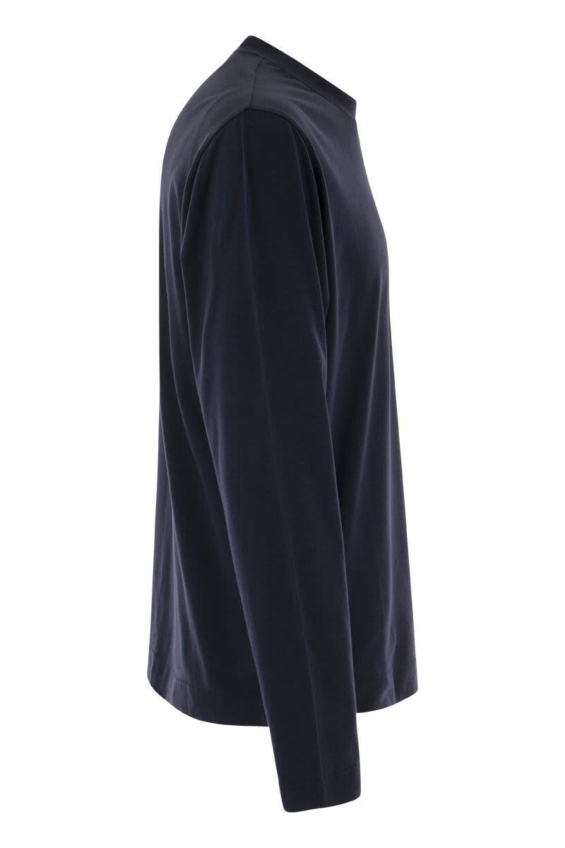 Long-sleeved crew-neck T-shirt in stretch cotton jersey, softer to the touch. To feel completely protected even on the coldest mid-season days or perhaps during a long evening outing at the beach. To never renounce elegance even in the most casual situations. - Contemporary style - Comfortable fit - Crew neck - Long sleeves DESIGNER ID: 6UI00537 4