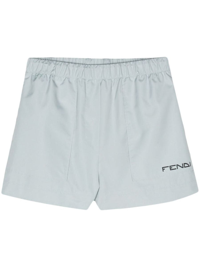 powder blue lightweight elasticated waistband two side zip-fastening pockets logo print to the front drawstring fastening to the rear
