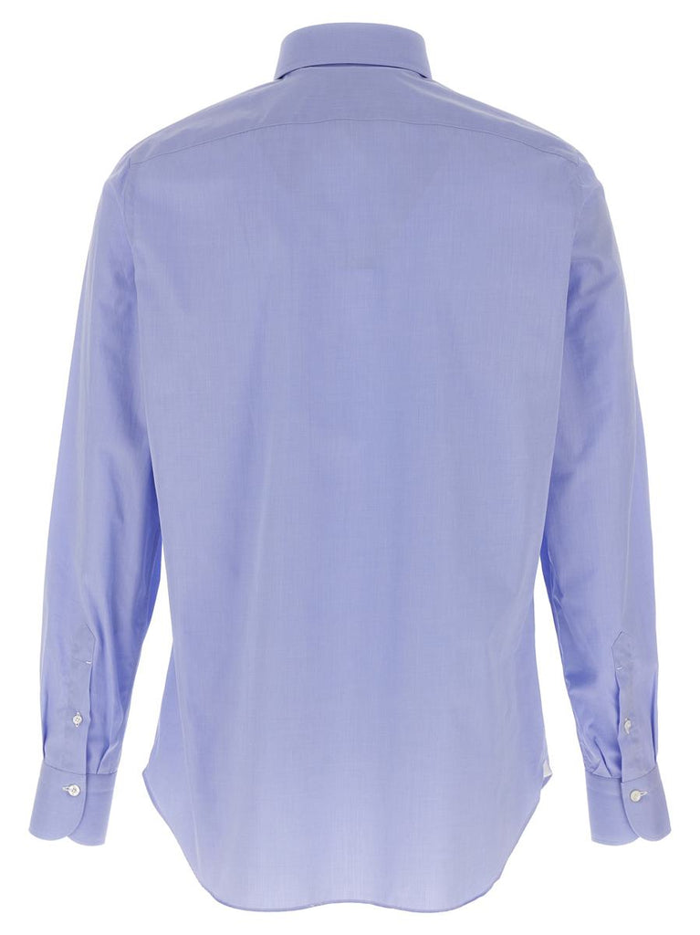 'Napoli' cotton shirt with button closure, long cuffed sleeves, contrast satin logo detail on the side slits
