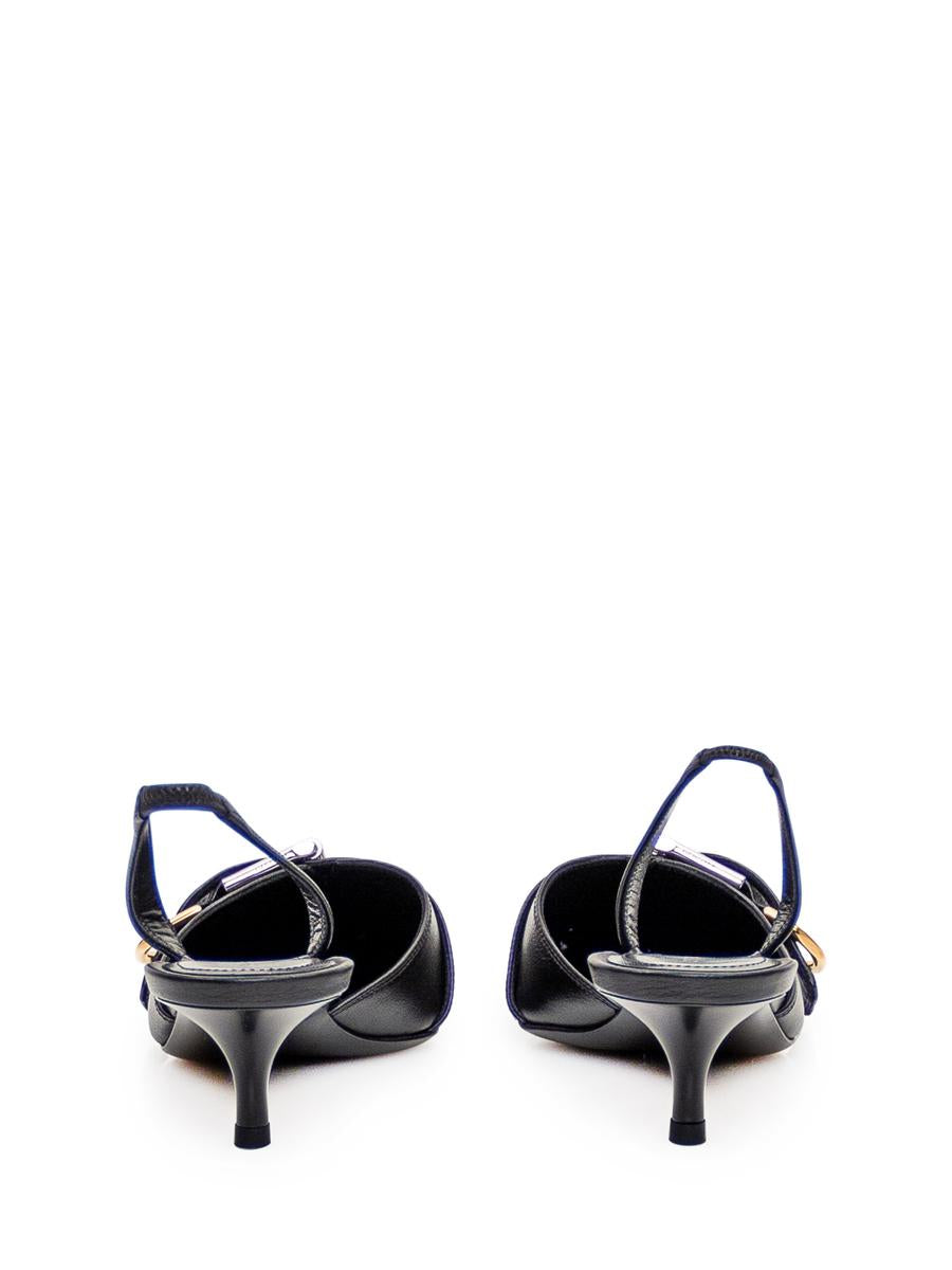 Black leather pumps with tapered toe. Strap at back. Slim heel. Strap detail on top with two-tone metal buckle. GIVENCHY logo on the sole. Heel height:4.5