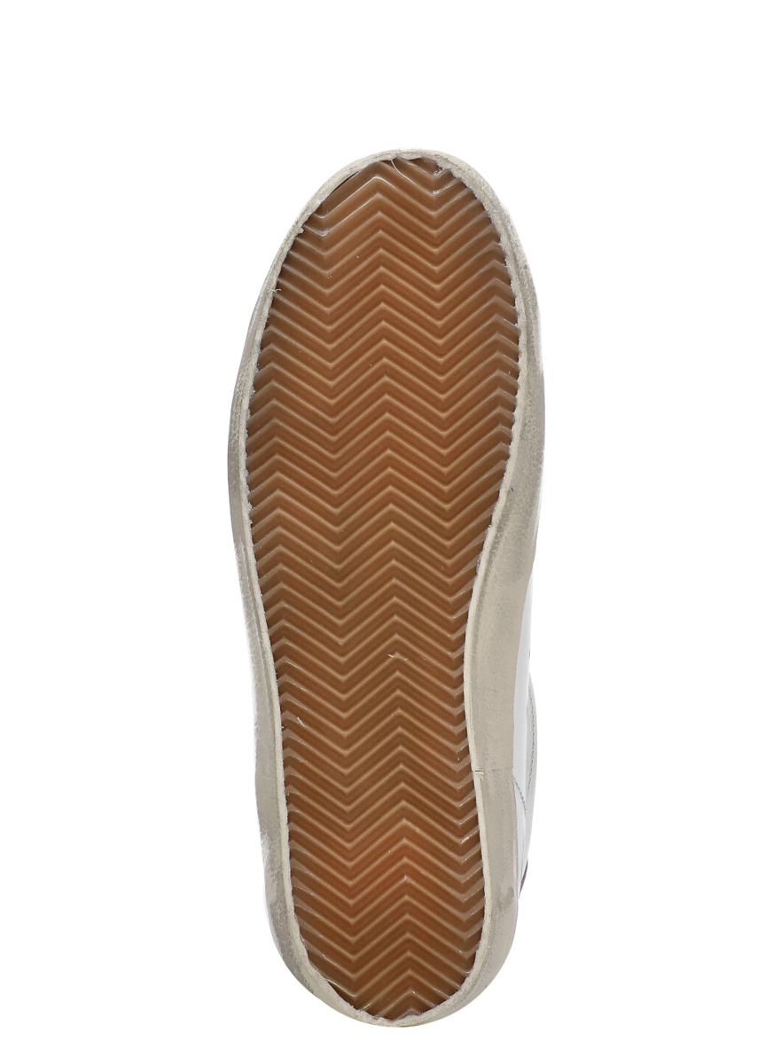 - White Golden Goose smooth leather sneakers for woman - Contrasting colour suede leather round toe - Front laces fastening - Side suede leather Star logo - Contrasting colour glittered upper heel with logo - Used effect
