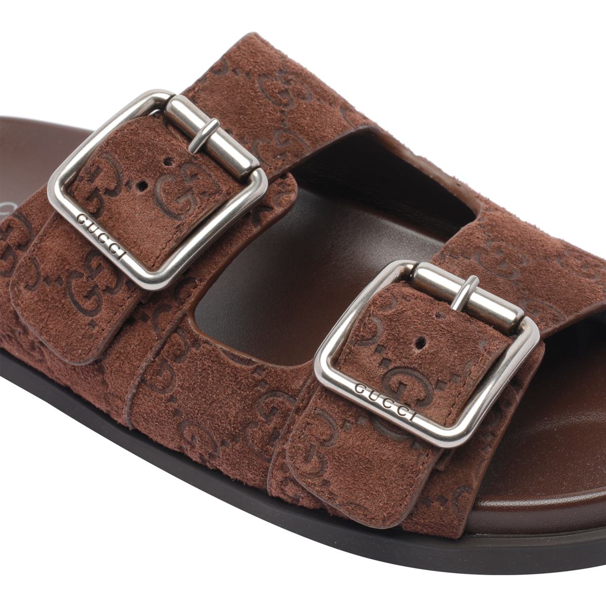 Gucci Brown Gg Slide Sandals, Round Toe, Suede Upper, Gg Logo Allover, EU SIZE (IT)
