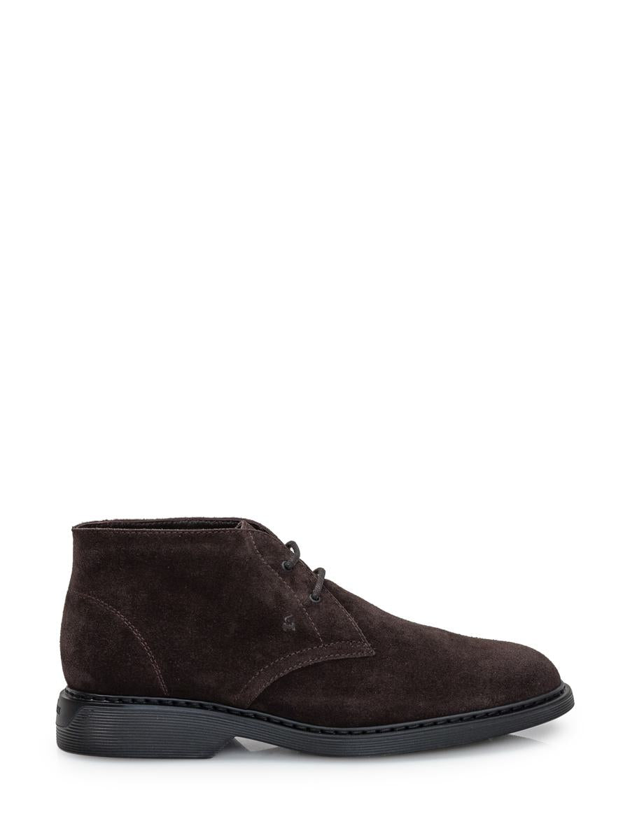 Suede leather lace-up. Lace-up closure. Round toe. Logo embossed on the heel. Reference size: UK