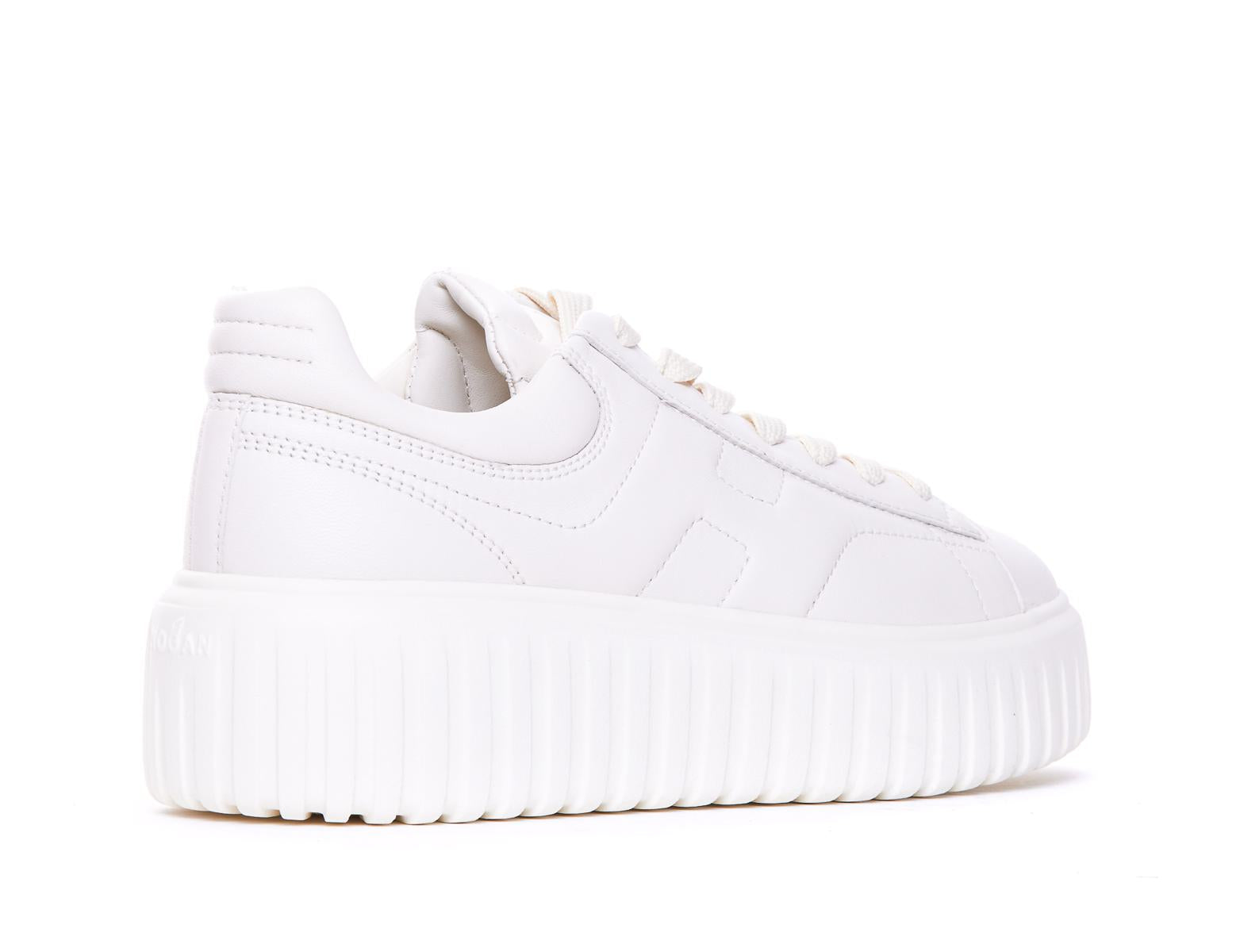 Hogan White H-Stripes Sneakers, Round Toe, Leather Upper, Lateral Tone On Tone H Logo, EU SIZE (IT)