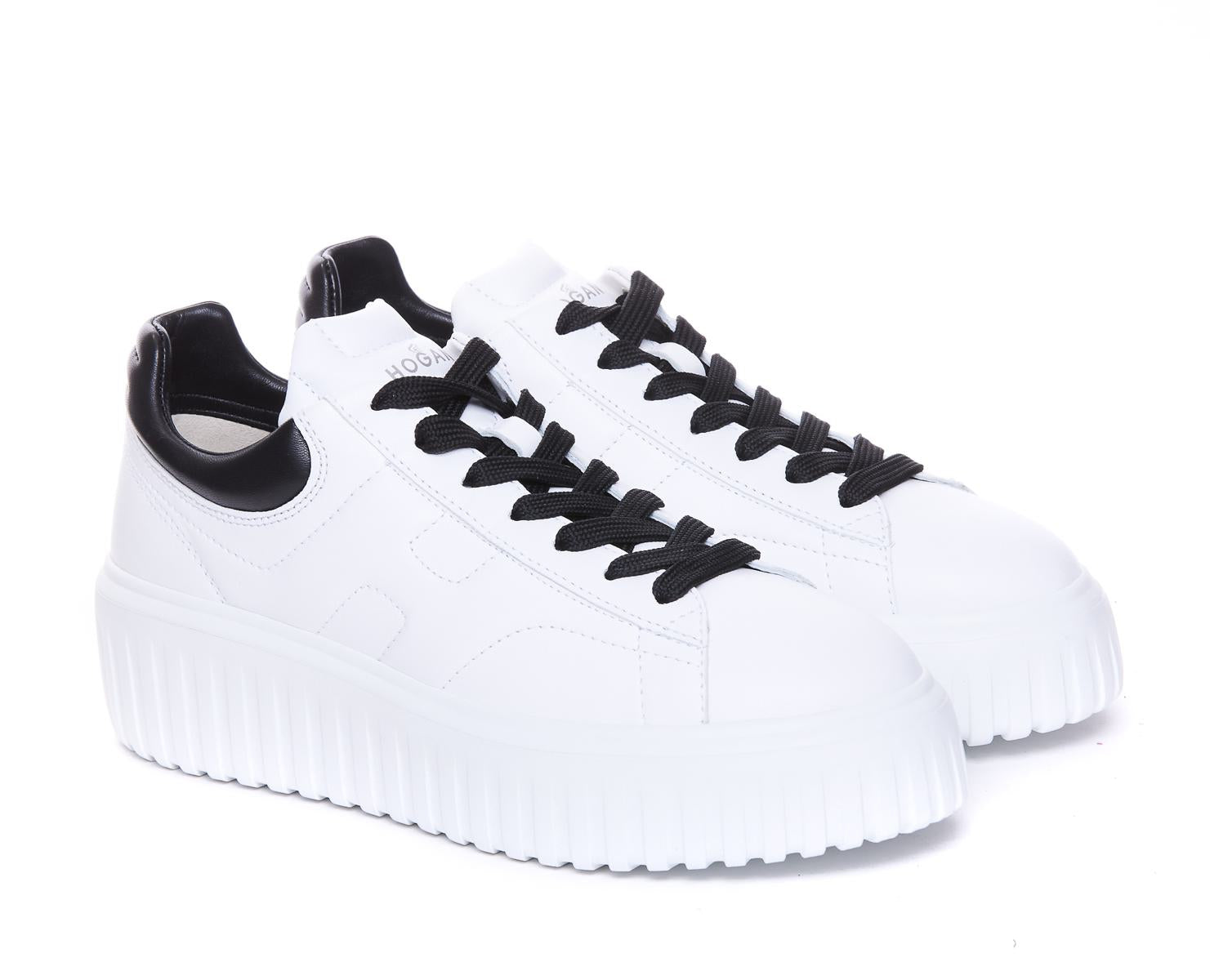 Hogan White H-Stripes Sneakers, Round Toe, Lateral Tone On Tone H Logo, Laces Closure, EU SIZE (IT)