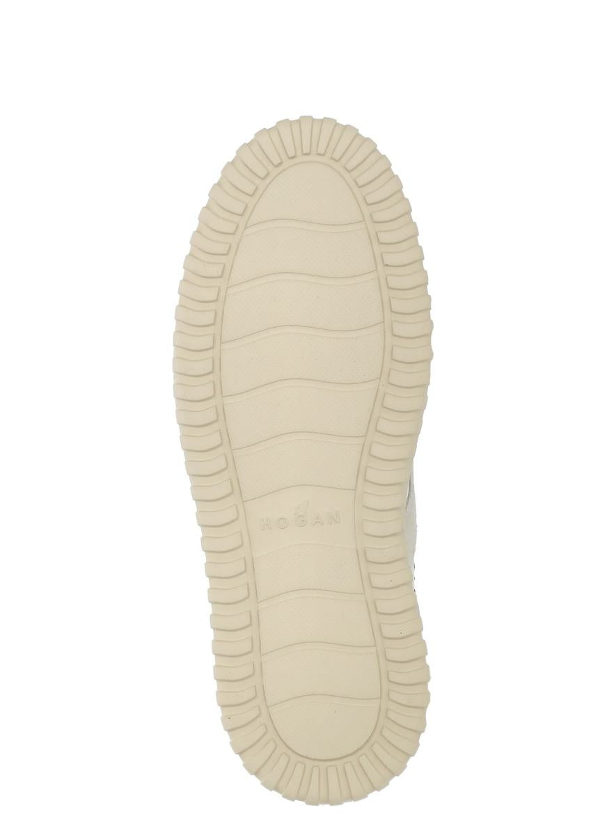 - White Hogan leather sneakers for man - Round toe - Front laces fastening - Logod tongue - Side contrasting suede leather fabric H logo - Raised rubber sole (5 cm) - Blue color rear tab
